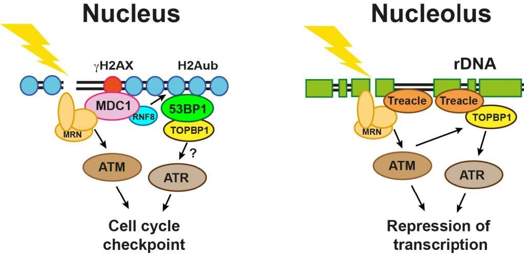 Currently, we are specifically focusing on the question how cells deal with DNA lesions in the highly compacted chromatin environment that exists during mitosis. In addition, we are also interested in how cells respond to DNA lesions in the nucleoli, small subnuclear compartments that accommodate the highly transcribed and repetitive rDNA.